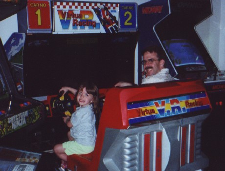 "I am driving this car. Dad is playing with me. He is driving and winning just like me."