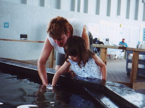 "Me and mom are reaching for some shells. There are no stingrays in this. They are in a bucket in a place not like a store."