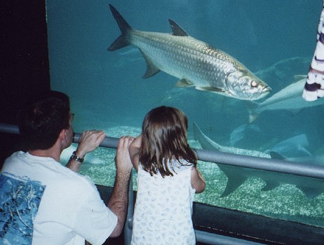"Me and Dad are watching a fish. I am watching it too. It's a little chubby."