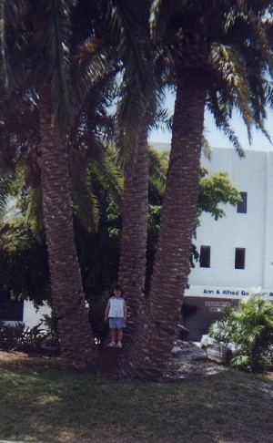 "I am at a beach where coconut trees were. We did not reach to get coconuts because they were too tall and they were teenagers."