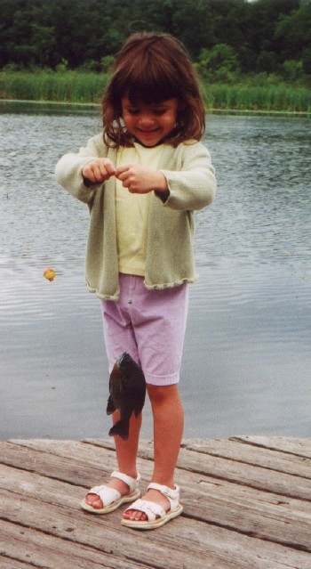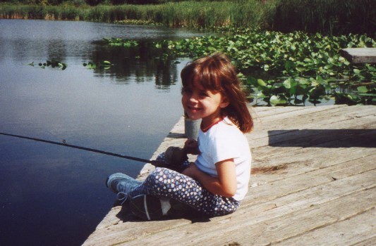 Sitting on the dock of our favorite pond. Dad says not to tell anyone where it is.