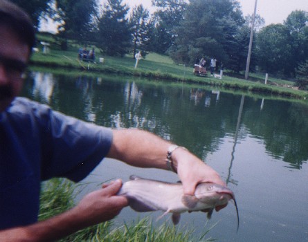 A rainbow trout and a catfish we caught at the pay pond.