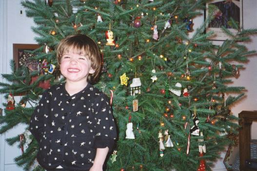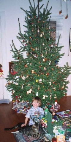 | Even our normally wild kitty, Ciki, is well-behaved at Christmas time. Here is our tree which we went out and cut at a farm near Saline. |