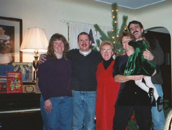 | Christmas Eve at Grandma Glenda's house This is Jenny, Uncle Matt, Grandma Glenda, Mom, Daddy and my backside. The camera has a pretty bright light. |