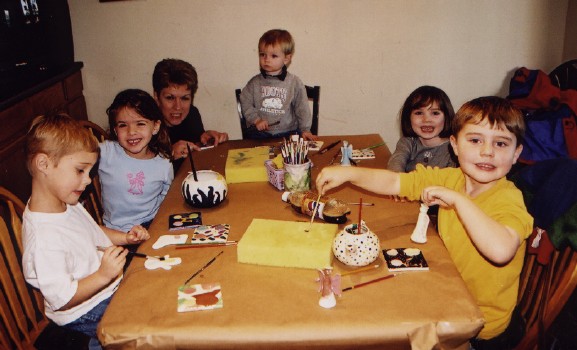 These are some of my friends from school. We are at the pottery place across from