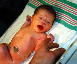 This is me just minutes after I was born. I don't look happy, do I? My hands are even still kind of blue.