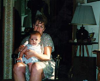 Sometimes I like to just sit on Mommy's lap and hang out. Here we are at Grandma and Grandpa's house. Mom and I have our sun dresses on.