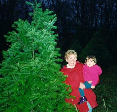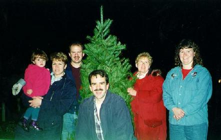 The tree cutting gang: Me, Mom, Uncle Matt, Dad, Grandma Glenda and Jenny.
