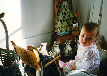 Some mornings when I wake up, I like to sit in my favorite corner and play. I have dolls, kitties and other fun stuff. The morning sun comes in there, so it's nice and warm